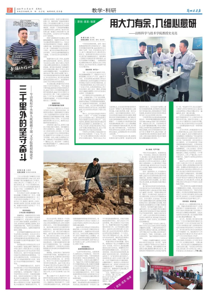 “我从老师们的点滴教导和鼓励中慢慢找到自己的路,我也应该这样对待现在年轻的孩子们。”和学生作伴的路上,史克亮总觉得他们就是年轻时的自己。以自身之经历感受,还学生以教育引导,这份初心,正在成为无数青年学子从核学院走出去的“幕后之手”。