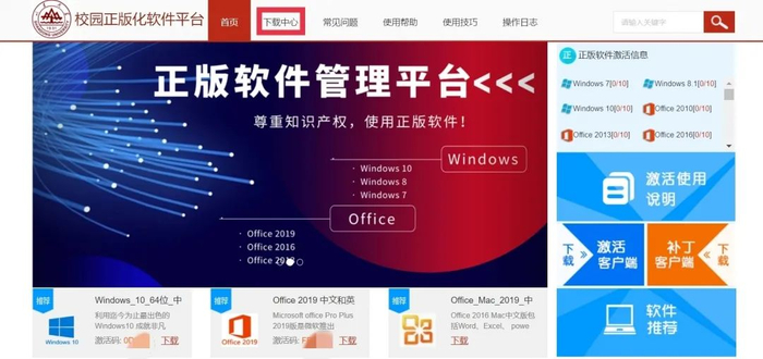 1、登录校园正版软件平台(softms.sdu.edu.cn)并点击下载中心。