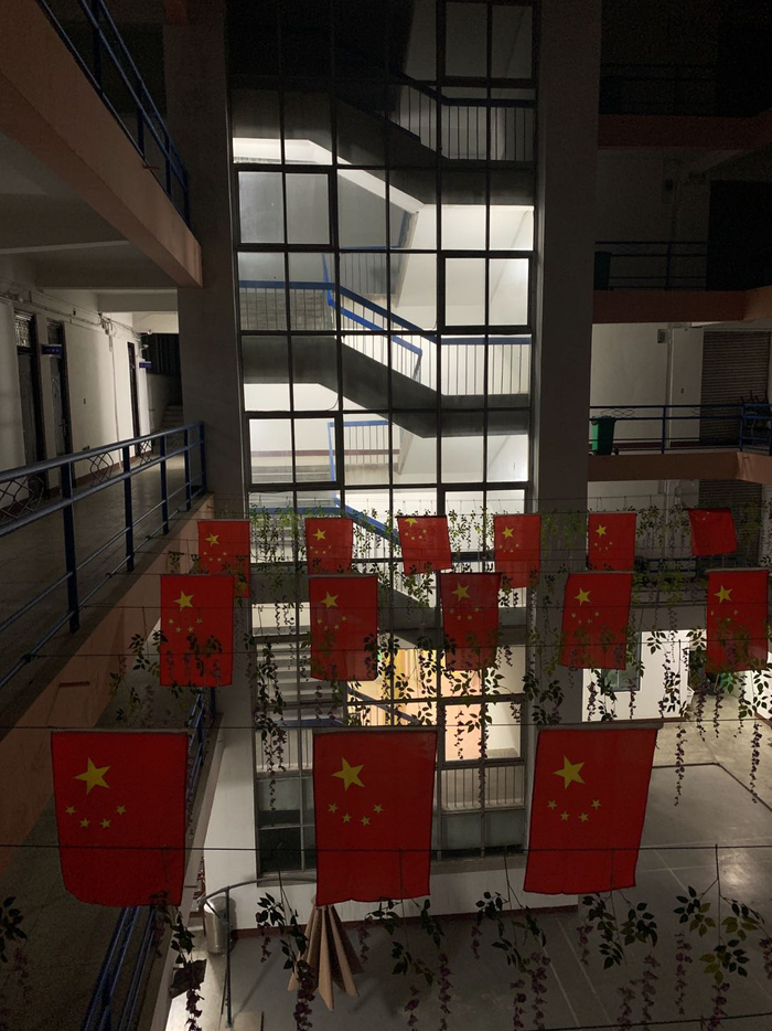 学习的间隙去找同样留校的朋友聊聊天,他们用鲜花把班级重新装饰了一下,也希望回家的同学们都能平平安安。