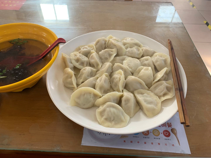 中午去学五食堂吃饭,现在食堂还有一半的窗口在营业,冬天吃饺子喝点饺子汤,身体就能暖和起来了。