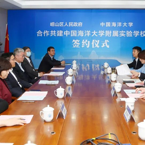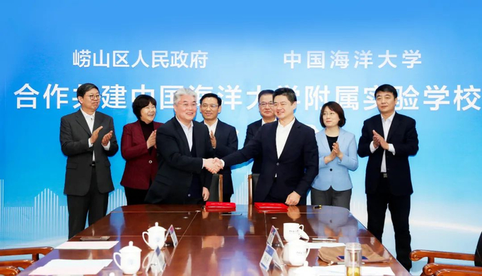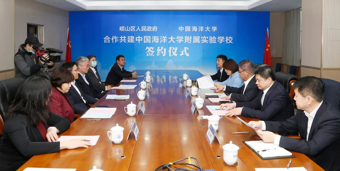 1月21日上午,崂山区人民政府、中国海洋大学合作共建中国海洋大学附属实验学校签约仪式在崂山校区举行。
