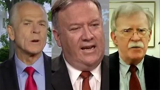 第一类,像蓬佩奥是特朗普政府国务卿,奥布莱恩是特朗普政府国安顾问,博尔顿是对华鹰派也是奥布莱恩的前任,他们负责全面对抗中国政策的制定和执行。