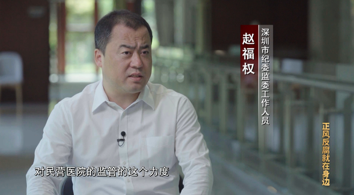 赵福权(深圳市纪委监委工作人员):他的监督的对象就是民营医疗机构,收受了这些人所送的一些钱物,对这个民营医院的监管的这个力度,造成很大的影响。
