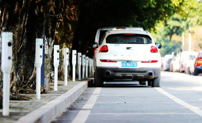 垫江城区路边临停车位可自动扫码 向晓秋 摄