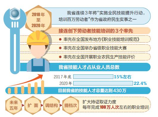 近年来,我省坚持以助推转型发展和实现高质量就业为导向,持续推进“人人持证、技能社会”建设,把实施全民技能提升工程作为一项重要工作来抓,为全省实现更高质量发展和更加充分就业目标提供技能人才支撑。截至目前,我省累计培训贫困劳动力70.8万人次,取得各类技能等级类证书的有47.4万人,培训后实现稳定就业26.5万人。为全面打赢脱贫攻坚战,决胜全面建成小康社会奠定了坚实基础。