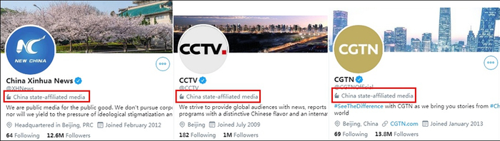 去年8月6日,继脸书之后,社交媒体平台推特也宣布对中、俄等主流媒体账号添加“国家控制”、“官媒”等标签,并限制其内容推广。