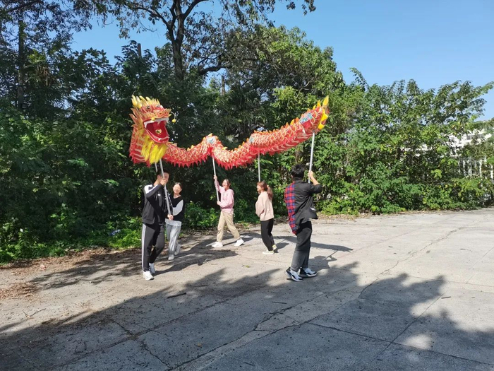 体育课舞龙舞得好开心