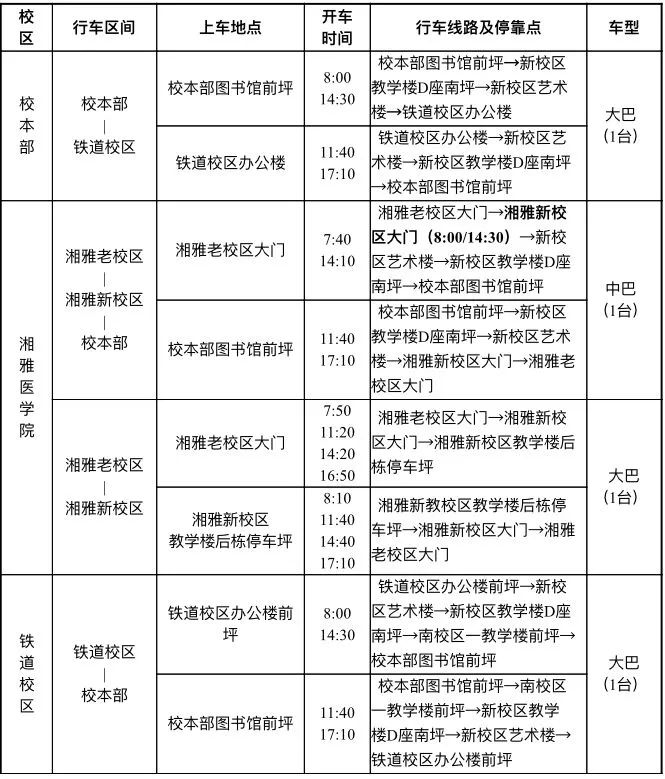 6、湘雅老校区:家属区大门保持开通,仅限校内车辆及人员、外来办公车辆及人员通行。教学区大门仅供学校班车出入。后门限时开通(开通时间为7:00 - 18:00)。