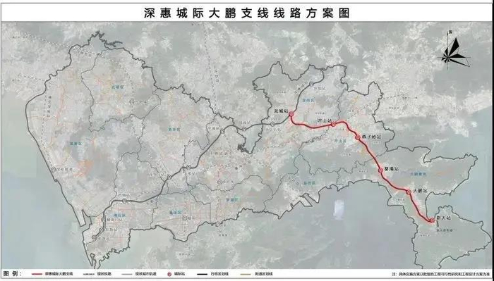 深惠城际大鹏支线是《粤港澳大湾区城际铁路建设规划》重要组成部分,位于深圳市境内,起自龙城站,终至新大站,全线采用地下敷设方式,长约39.5公里,共设6座车站。