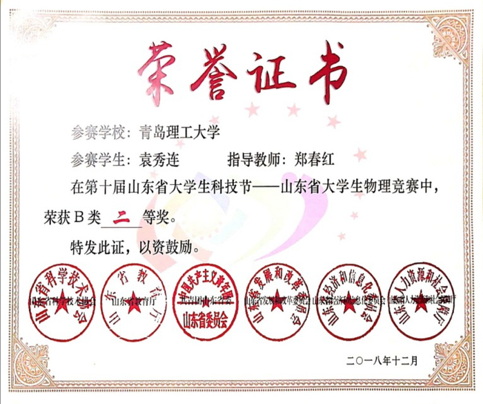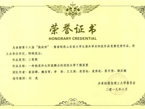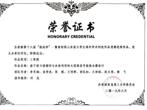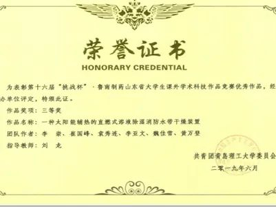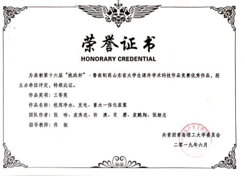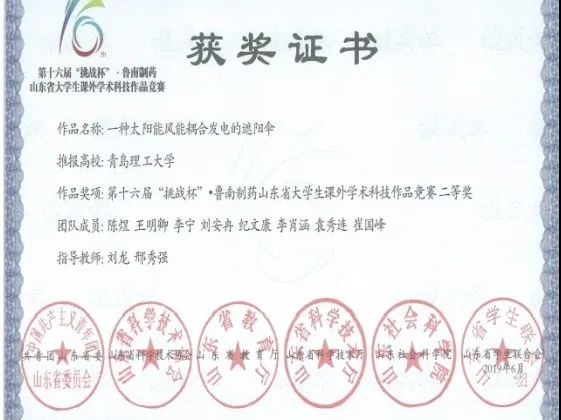 2019.06 第十六届挑战杯山东省大学生课外学术科技作品竞赛二等奖