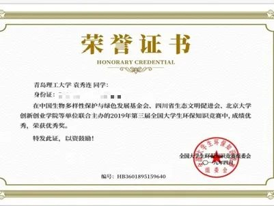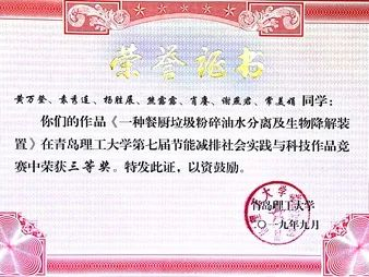 2019.10 山东省大学生环保科普创意大赛三等奖