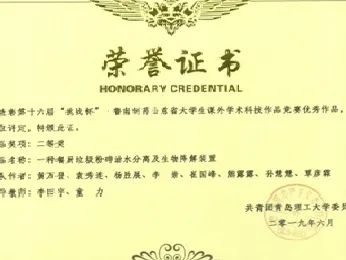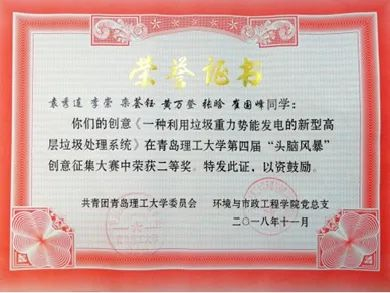 2018.11 山东省第四届环境类专业大学生科技竞赛二等奖