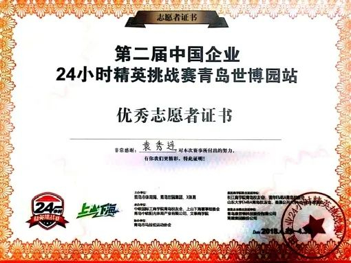 2018.04 中国企业24小时精英挑战赛“优秀志愿者”