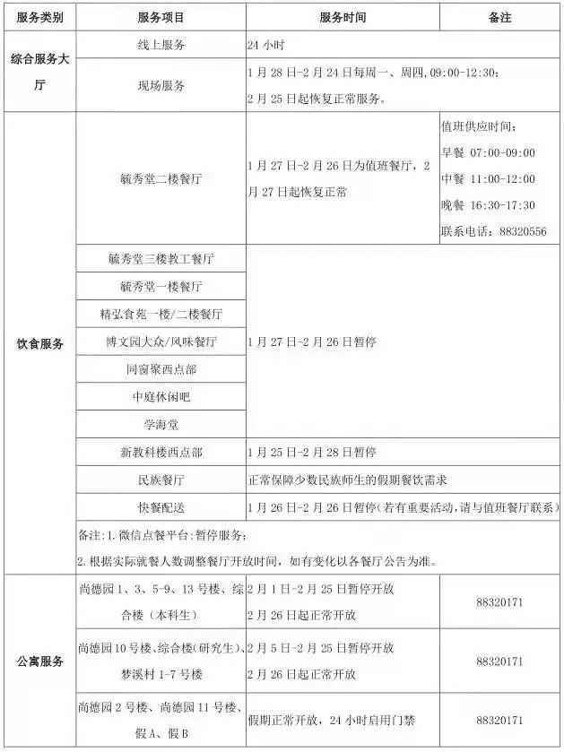 1.大年初一,每位同学凭校园卡,食堂早餐就餐免费。大年初一至初三,食堂中、晚餐免费赠送水果或酸奶一份。