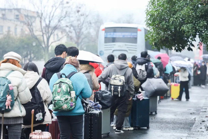 忙碌的期末考试周终于结束,寒假我来了!我一大早打包好行李,去排青年快线了。虽然是雨天,但我们都是热情满满,从排队、乘车到下车,整个过程井井有序,不愧是我们工大人。