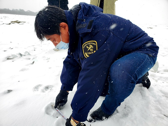 1月26日,距第一次发现野生东北虎足迹仅相隔六天,黑龙江省虎林市虎头镇乌苏里江面再现野生东北虎爪印。湿地管理局的工作人员根据它的掌垫、掌长、掌宽以及步态判断,与之前两次出现的老虎爪印相似度极高,基本可以断定是同一只老虎。