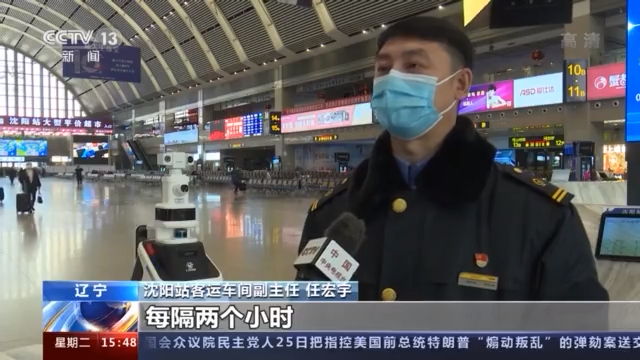 沈阳站客运车间副主任 任宏宇:引用这个机器人之前,我们都是用人工来进行消杀。每隔两个小时,由我们的工作人员对候车室进行消杀一次。用消杀机器人以后,我们的工作人员在工作量和劳动强度上也有了很好的缓解。