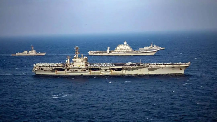 “马拉巴尔-2020”演习中,美印组成双航母编队。