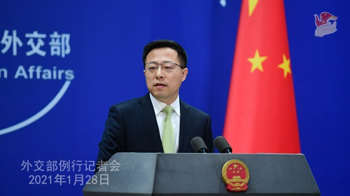 2021年1月28日,外交部发言人赵立坚主持例行记者会,以下为实录全文。