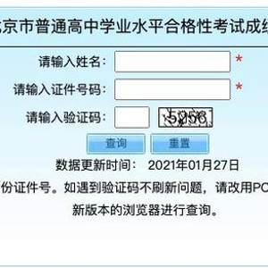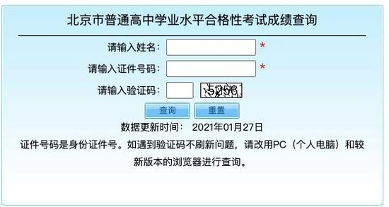 今天上午,北京市普通高中学业水平合格性考试成绩查询系统开通。考生可输入姓名、证件号码、验证码后进行查询。