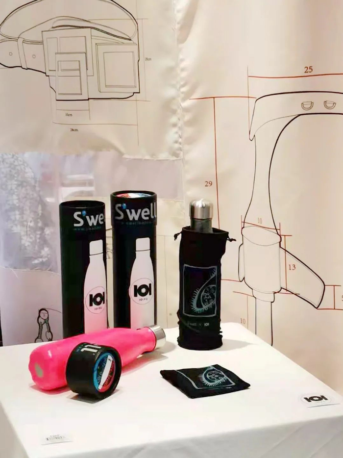 除了与服装品牌合作,课程还与SwellBottle保温杯联名了公益款防尘袋。