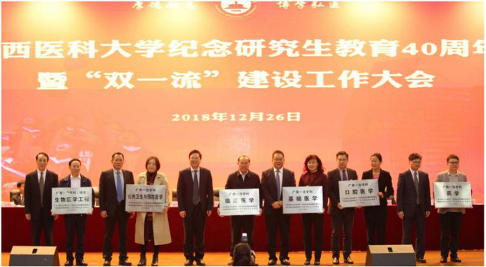 学校党委和行政高度重视,深入贯彻落实国家和自治区关于“双一流”建设的精神和要求,将“双一流”建设纳入学校未来发展的重要行动纲领;加强学科组织全校性“双一流”建设大讨论活动,全面准确检视各单位在推动“双一流”建设中存在的问题和不足,多次召开专家研讨会,印制“双一流”大讨论规划专刊;召开学校第二次全委(扩大)会议,深入研究和论证“双一流”创建方案。2018年,我校临床医学、基础医学、公共卫生与预防医学、药学、口腔医学获批广西一流学科,生物医学工程获批广西一流学科(培育)。建设周期四年,每年建设经费8200万元。