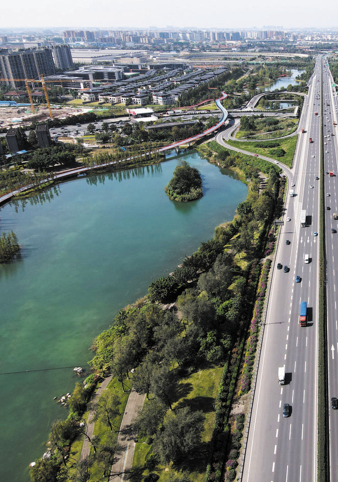一排排桉树林整齐列队,飞快地从车窗前掠过,下一秒绵延起伏的宽阔草坪跳入眼帘,一座座造型各异的桥跨过高速、河流连接绿道……如今,行驶在绕城高速的你是否发现了两侧景观的变化。