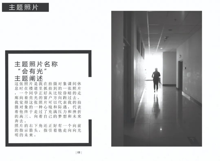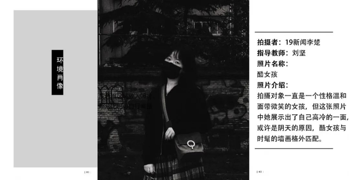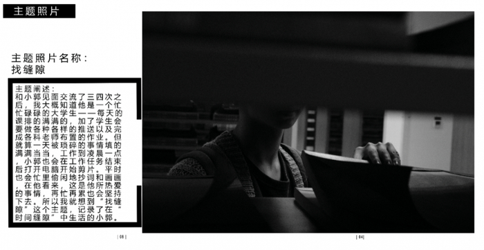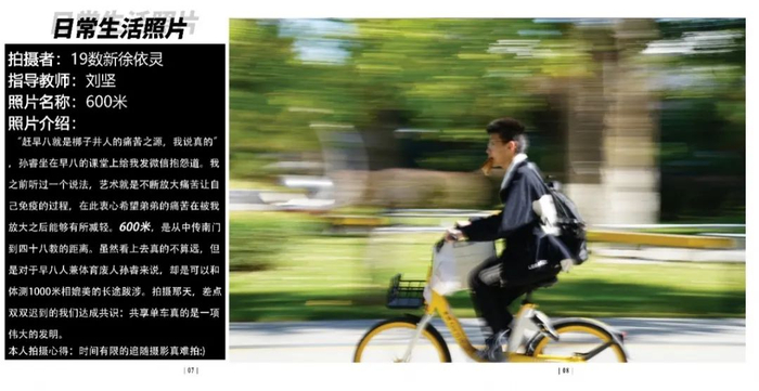 点评:封面设计得比较有趣,主题照片拍摄的角度较好,但是景别过于重复,多景别多侧面进行拍摄会更好。