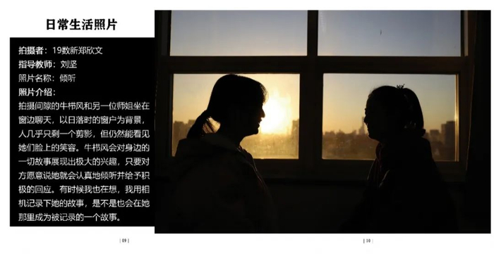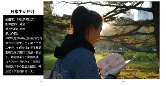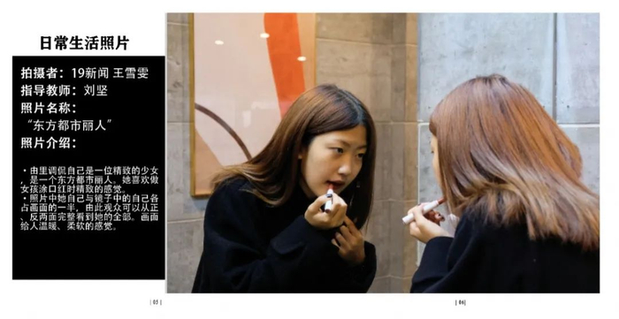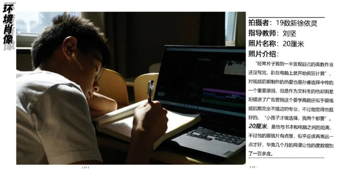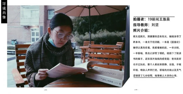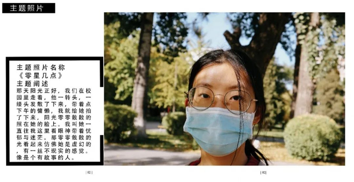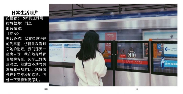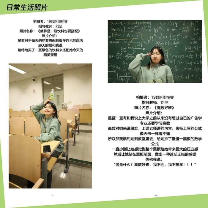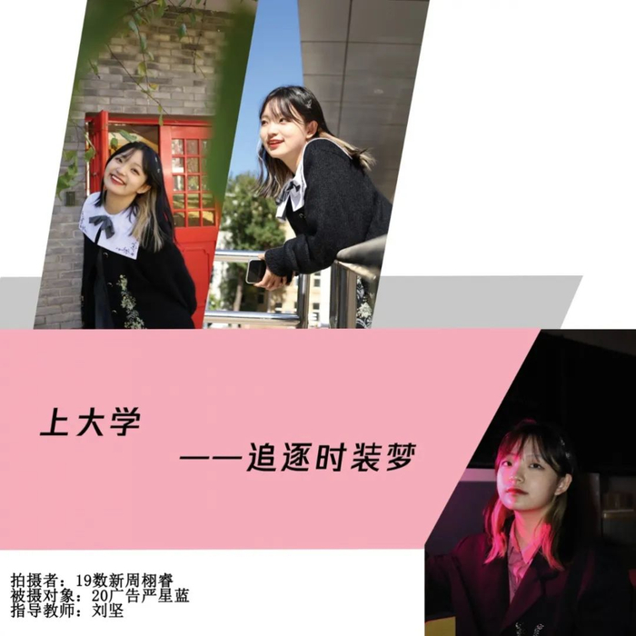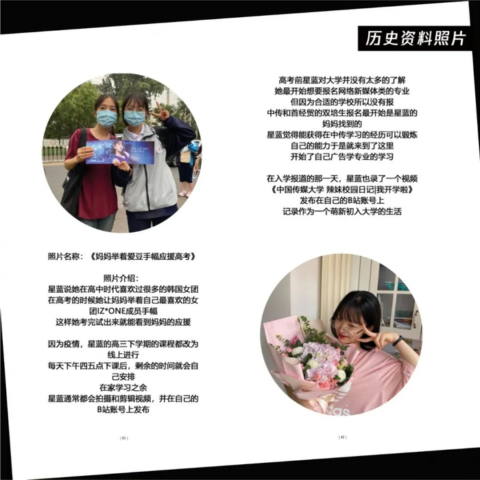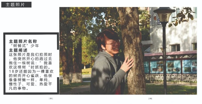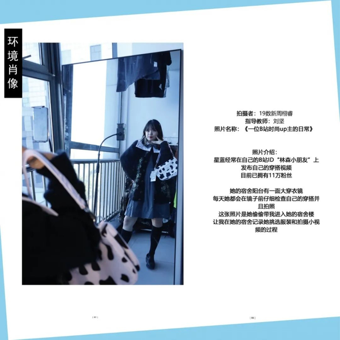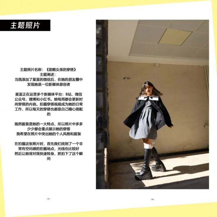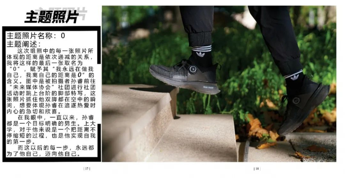 点评:拍摄对象是运营四个账号的同学,环境肖像拍摄挑选搭配衣服的照片,高中和大学反差比较大。图片配文太多,可以简洁一些,大段文字放到采访里面,拍摄得非常棒。
