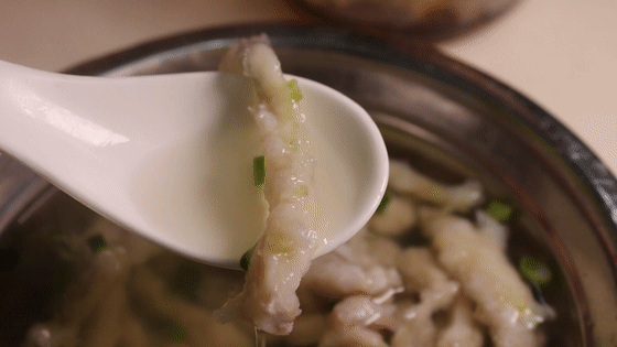 三丝敲鱼用鸡脯、火腿、香菇“三丝”加高汤、敲鱼烹制而成。鱼肉鲜嫩无比,经过反复敲打,入水汆熟,配上醇味的高汤,不需要别的调味品,味道鲜嫩爽滑,入口的弹牙感让人回味无穷。