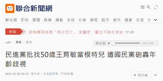 称国民党文传会主委王育敏是“50岁阿姨”,民进党网络部主任删文致歉