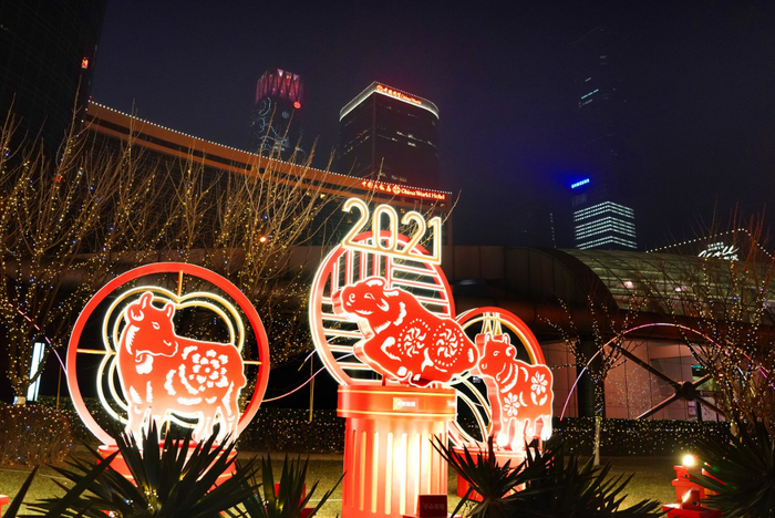 仿佛置身绚丽星河!迎春灯组亮相北京街头。