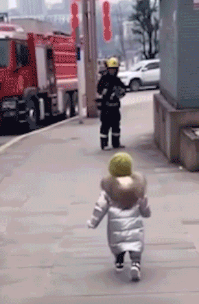 又帅又暖!萌娃偶遇消防员爸爸没认出,被爸爸单手抱起。