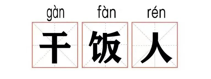 释义:干饭,一种激昂且迫切的吃饭方式,形容对待食物原始而又真挚的冲动。干饭人,即奋力吃饭的人。