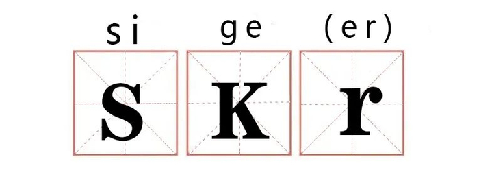 但当中国人民用它造句时,它的意思就变了——成了“si ge (er)”的谐音,比如你可以说:“笑skr人(笑死个人)”、“请skr而止(请适可而止)”、“你可真skr小机灵鬼(你可真是个小机灵鬼)”。