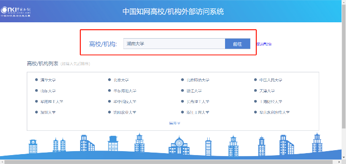 3、在高校/机构搜索框中输入“湖南大学”,点击前往