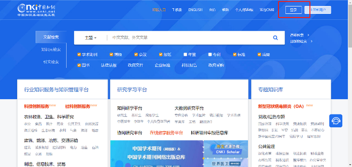 1、进入知网页面,点击右上角登录