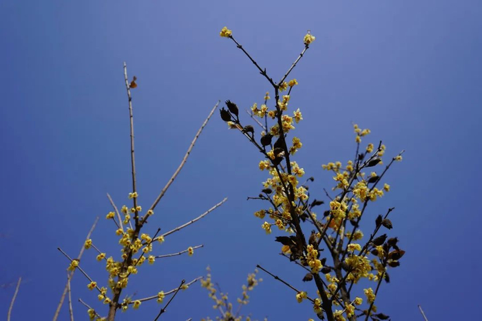 勤劳的蜜蜂不舍弃每一朵盛开的腊梅