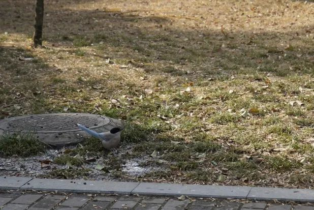 胆大的喜鹊自在饮水后振翅高飞