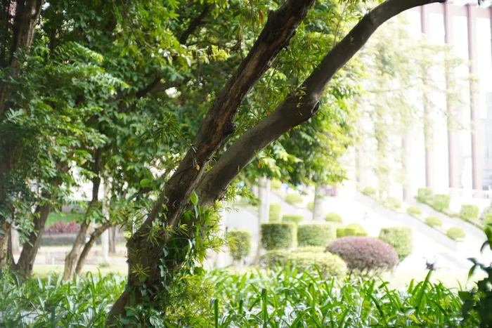 绿色!因为校园的绿化很好,满眼都是绿意盎然。