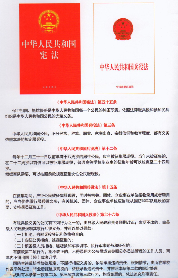 6、役前教育训练:县级征兵办组织体检和政考双合格人员进行为期1周左右的役前教育训练,以思想教育为主、军事训练为辅,并同步开展体格抽查复查工作。