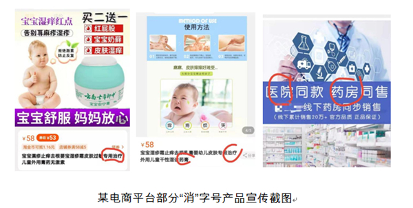 广告宣传也存在误导。《消毒管理办法》第三十一条规定,“消毒产品的标签(含说明书)和宣传内容必须真实,不得出现或暗示对疾病的治疗效果”。也就是“消”字号产品不得宣称对疾病的治疗效果,也不应使用令人误以为有治疗效果的名称等。但仍有一些经营者,为了推广和销售其产品而使用“治疗”“药膏”“医院同款”等字样,且这些“消”字号产品的名称大都为“某某霜”“某某膏”,很容易让消费者误认为是“药品”来选购和使用。如,本次“大头娃娃”事件的涉事企业不仅在其官方微信公号上多次宣传该款婴儿霜可“祛红止痒、修护受损皮肤”。