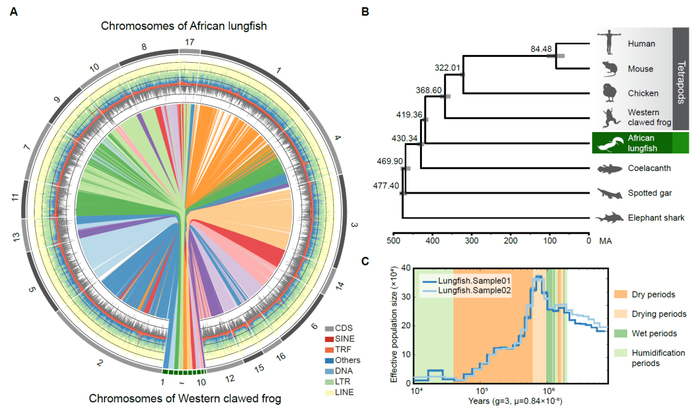 非洲肺鱼染色体水平的基因组组装和进化史(课题组提供)