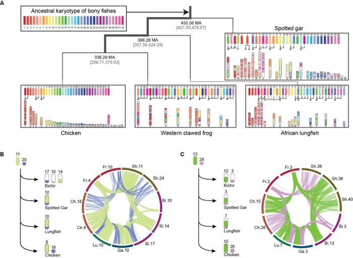 脊椎动物水陆过渡过程中原始染色体片段的保存(课题组提供)
