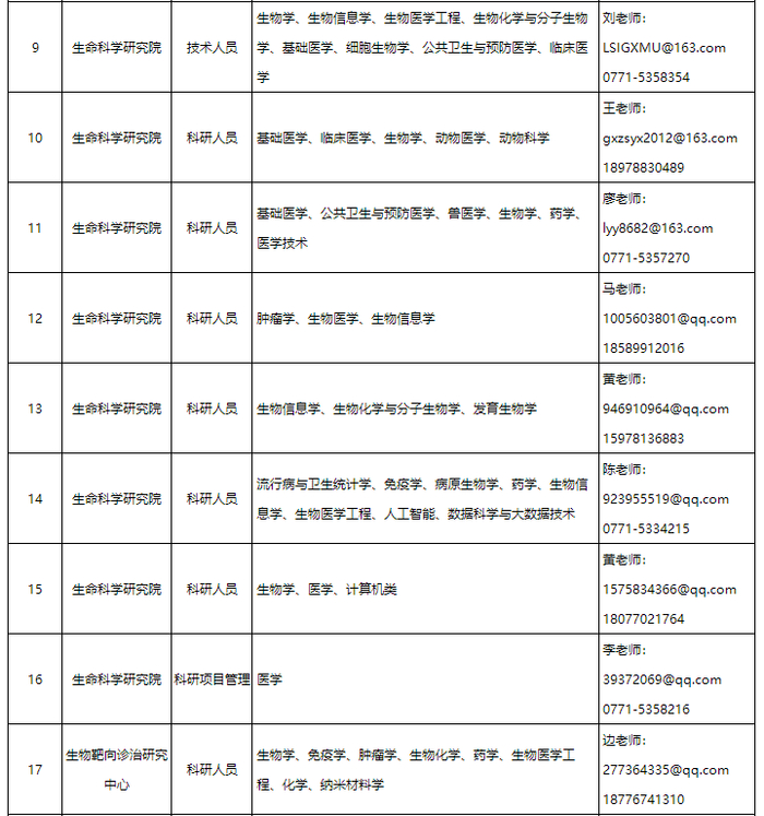 公共邮箱:gxykrcb@163.com (接收高层次引进人才和优秀博士简历)