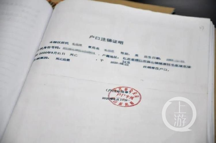 2020年12月24日,毛某企图帮欧年宝办理取保候审未果,为逃避追责为自己办理虚假“死亡证明”。图片来源:江都法院