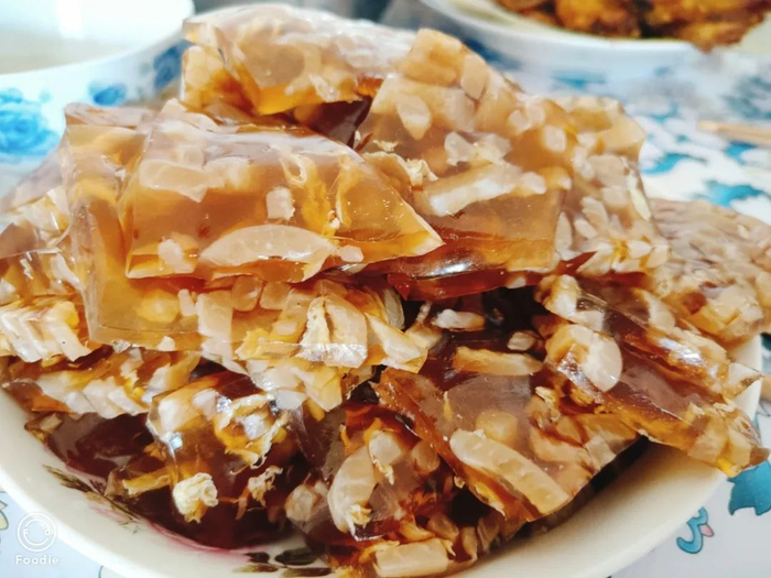 猪皮为原料,经熬制、冷冻多道复杂工序制成,可以加肉、鸡蛋、火腿,配上东北特有的酱油蒜泥,味道一级棒!