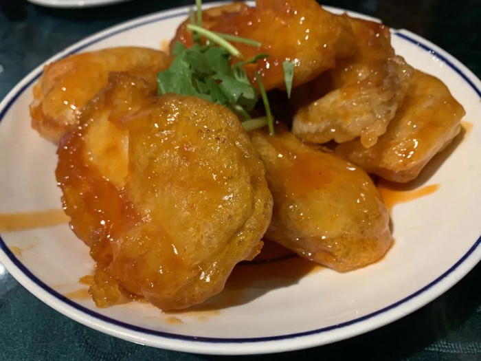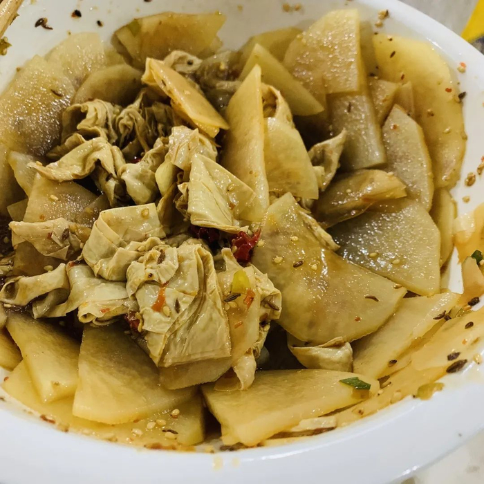 辣串辣串,不够香不够辣的辣椒油是配不上土豆和豆皮的。至于从光绪年间就流传下来的锅包肉,色泽金黄,口味酸甜,回家必须整一个!