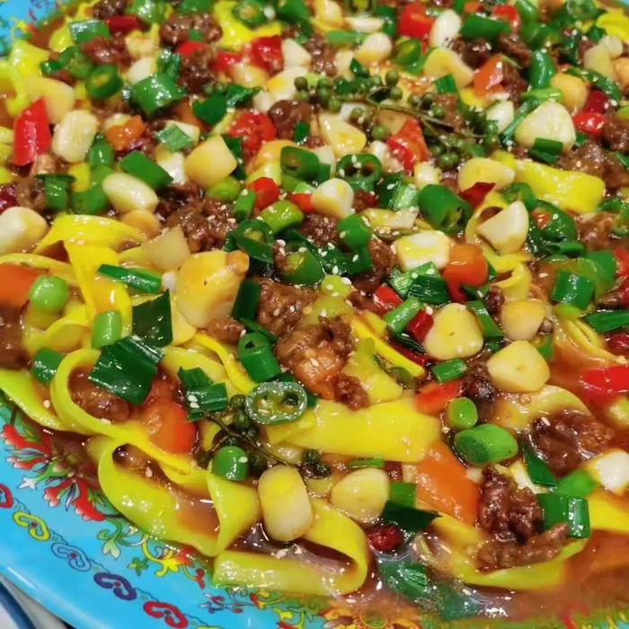 对于新疆孩子来说,家乡是回家第一口的家常拌面,是三五好友聚餐的大盘鸡,是夜市小摊上碰杯作响的大乌苏,是不知道吃什么的时候点一份的全掺凉皮擀面皮,融入新疆只需要一双筷子的距离,歹歹的台香赖。