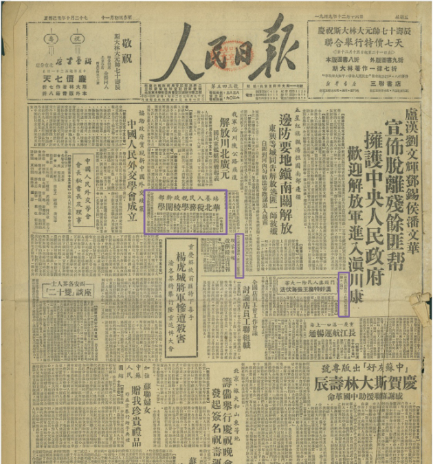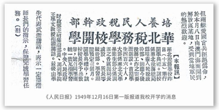 《人民日报》1949年12月16日第一版报道我校开学的消息